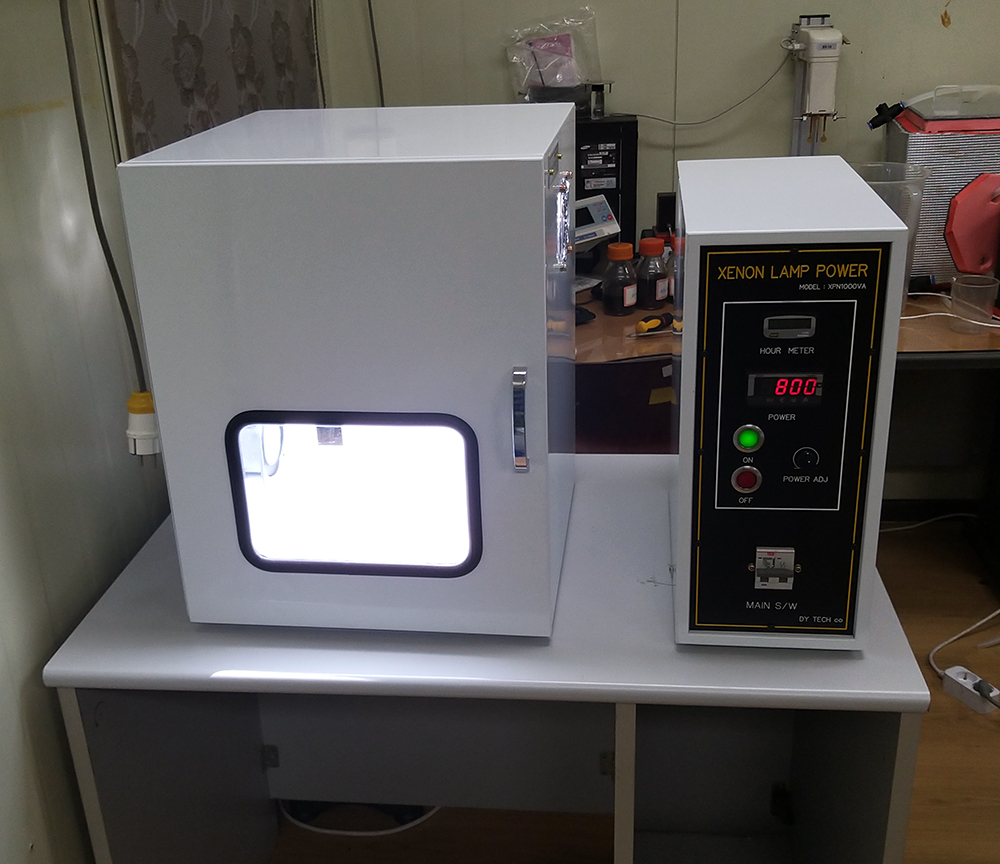조선대학교에 1000W 제논램프 태양광 시험기(Xenon Lamp Solar Simulator)를 납품하였습니다. 광촉매 반응을 보는 시험용이기에 챔버 도어에 창을 내어 시각적으로 변화를 확인 할 수 있도록 하였습니다.