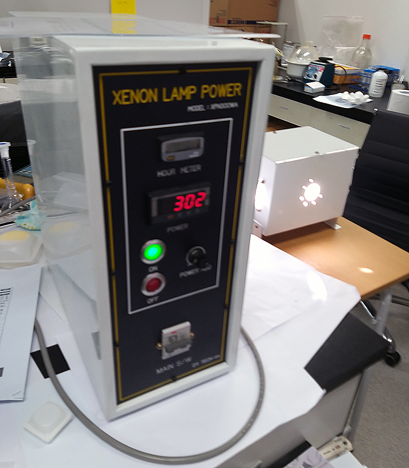 성균관대학교에 300W 제논램프(Xenon Lamp) 태양광 시험기(Solar Simulator)를 납품하였습니다. UV cut , IR cut 이 가능한 광학 필터를 부착 할 수 있는 홀더를 장착하였습니다. 담당 연구원이 미국으로 가져가 실험을 하고계신다고 합니다.