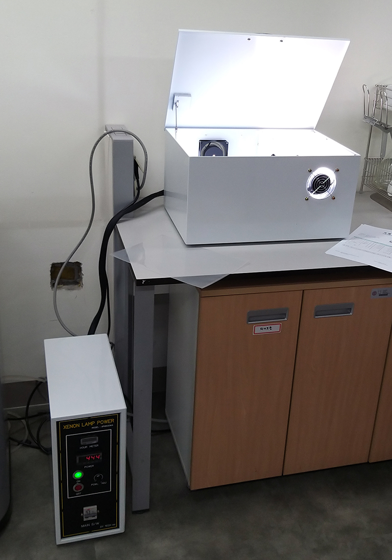 동덕여자대학교에 500W 제논램프(Xenon Lamp) 태양광 시험기(Solar Simulator)를 납품하였습니다. UV cut , IR cut 이 가능한 광학필터(Optical Filter)를 부착 할 수 있는 홀더(Holder)를 부착하였습니다. 챔버의 모양은 요구에 맞춰 제작합니다.