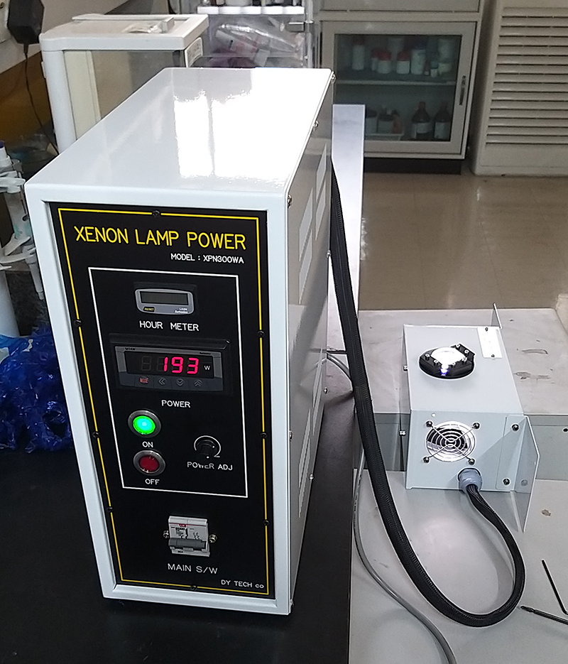 연세대학교 화공생명공학과 연구실에 500W 제논램프(Xenon Lamp) 태양광 시험기(Solar Simulator)를 납품하였습니다. 기존 연구실에서 사용하던 챔버(Chamber)가 있어 그 챔버를 가공하여 태양광 시험기 시료 챔버로 사용하였습니다. 제논램프는 열이 많이 발생하기 때문에 아크릴(Acrylic)보다는 테프론(Teflon)재질을 사용하는 것이 좋습니다.
