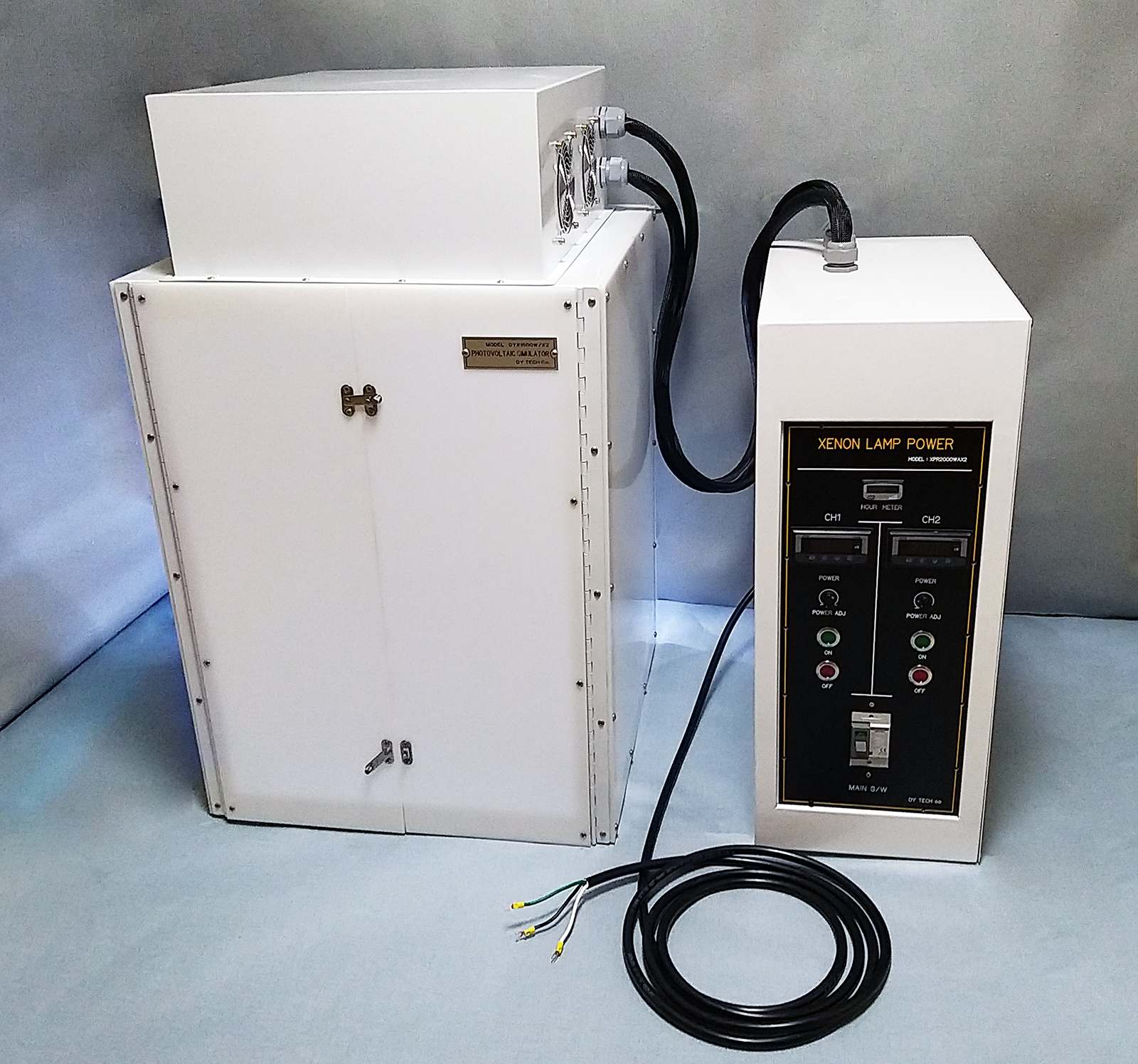 S전자의 수원사업장에 1600W제논램프(Xenon Lamp) 태양광 시험기(Solar Simulator, Photovoltaic Simulator)를 납품하였습니다. 요청받은 실험 조건을 만족시키기 위해 우시오(USHIO)사의 UXL-16SCB 램프 2EA를 사용하였으며 챔버 내부의 실험대까지 제작해드렸습니다. 실험대는 기존 서포트 잭(Support Jack)에 각도 조절과 회전이 가능하도록 제작하였습니다. 정확한 정보는 알 수 없지만 네비게이션 관련한 기술을 시험하는데 쓰인다고 합니다.