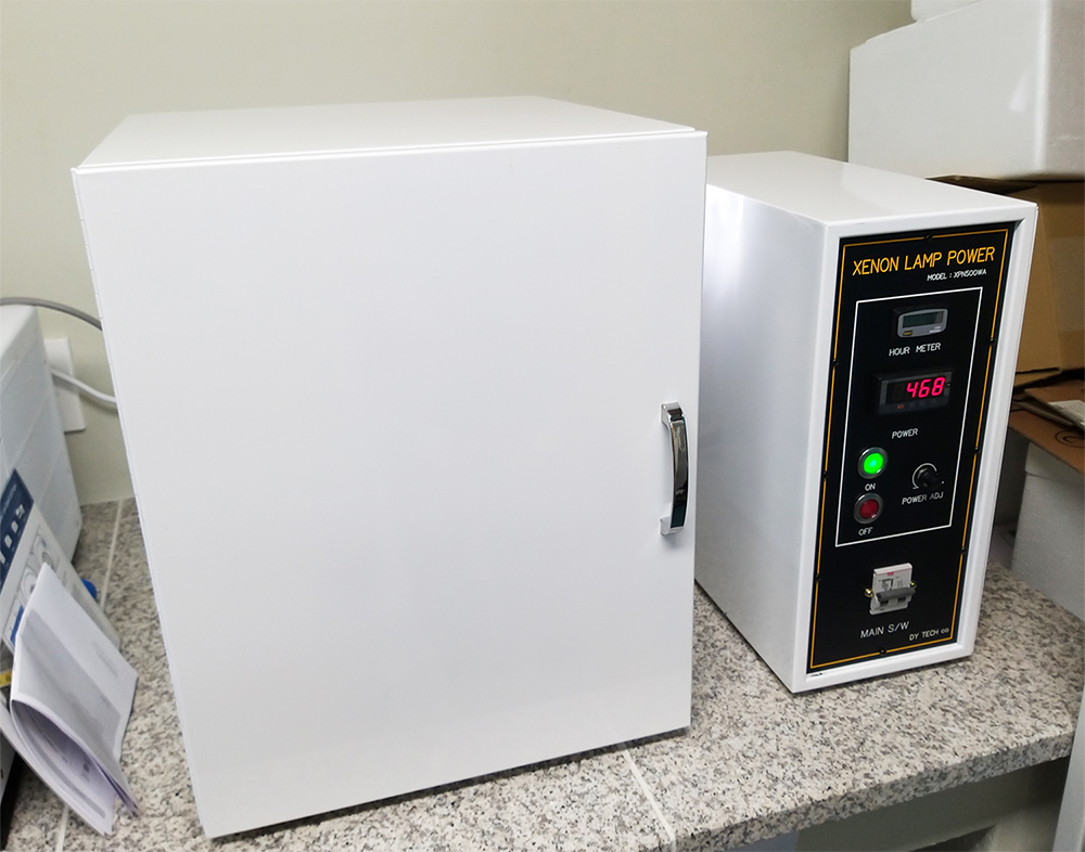 강원도 춘천에 있는 강원대학교에 500W 제논램프(Xenon Lamp) 태양광 시험기(Solar Simulator)를 납품하였습니다. 광학필터(Optical Filter)를 포함한 구성입니다. 액체형태의 시료에 빛을 조사하여 결과를 보는 실험용입니다.