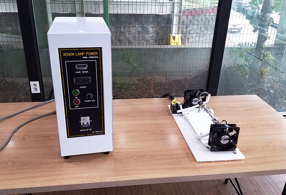 버스에어컨 제작업체 B사에 2000W 제논램프(Xenon Lamp) 시스템을 납품하였습니다. 버스 위에 설치하는 에어컨의 일사량 테스트에 사용 할 예정이라고 합니다. 램프챔버는 업체에서 직접 제작하신다고 합니다. W가 높으면 제논파워(Xenon Power)의 사이즈도 증가합니다.