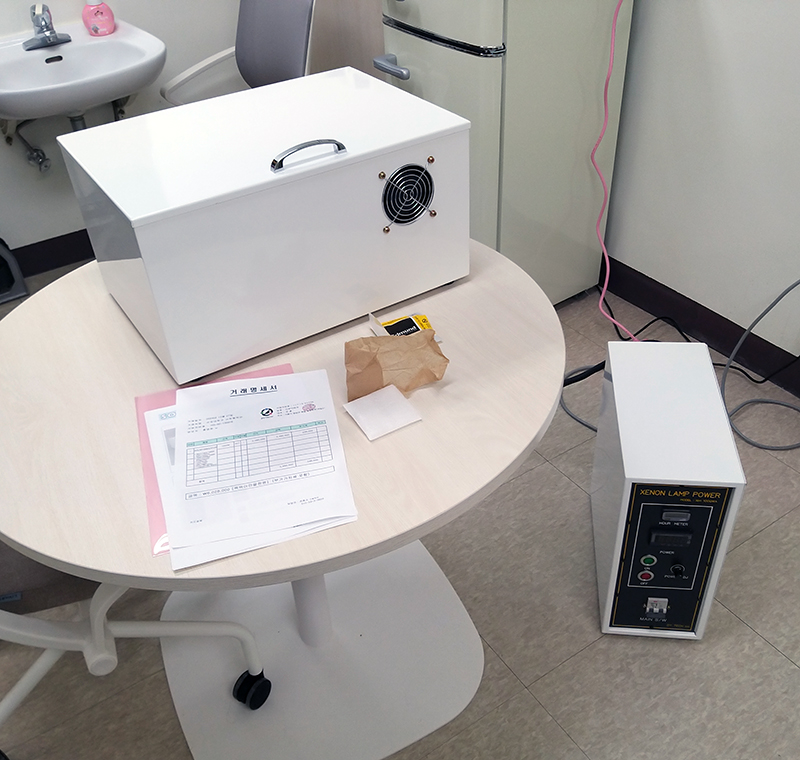 서강대학교에 1000W 제논램프(Xenon Lamp) 태양광 시험기(Solar Simulator)를 납품하였습니다. 아직 실험실 정리가 되지 않아 교수실에서 작동 테스트만 하였습니다. 요청사항에 맞도록 램프 챔버를 제작하였고 롱패스 필터(Longpass filter),자외선 차단 필터(Ir cut filter)가 추가된 구성입니다. 어떤 용도로 사용하시는지는 듣지 못하였습니다.