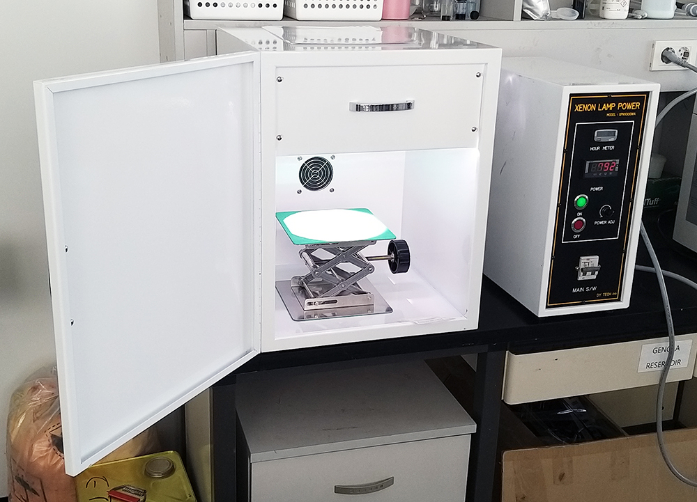 수원대학교에 위치한 나노입자를 개발하는 스타트업 업체에 1000W 제논램프(Xenon Lamp) 태양광 시험기(Solar Simulator)를 납품하였습니다. 자외선 영역까지 나오는 오스람(Osram)사의 1000W 제논램프를 사용하였습니다. AM1.5G 필터와 서포트잭를 추가하였습니다.