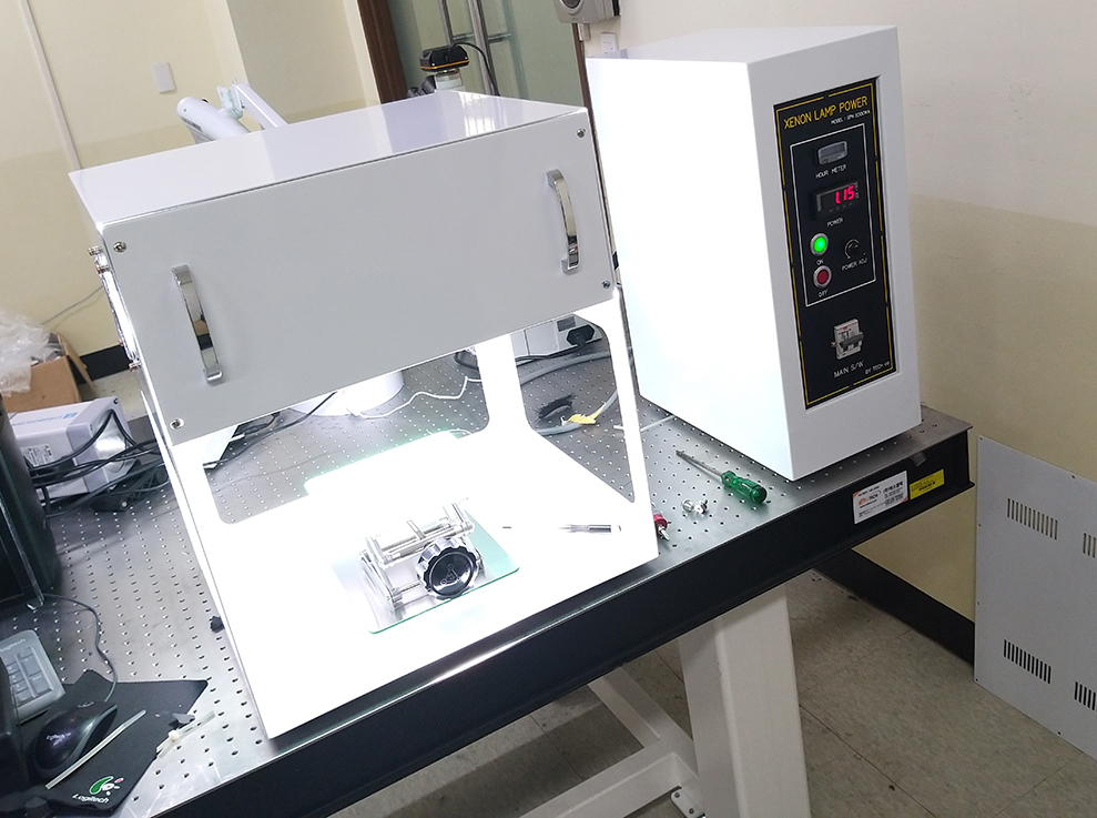 한국기술교육대학교에 2000W 제논램프(Xenon Lamp) 태양광 시험기(Solar Simulator)를 납품하였습니다. 시료에 m² =3000W의 빛을 조사하기 위해 2000W 제논램프를 사용하였습니다. 시료에 3000W 빛을 조사하면 발생되는 수증기가 모이지 않도록 챔버를 사방이 개방된 형태로 제작하였습니다.