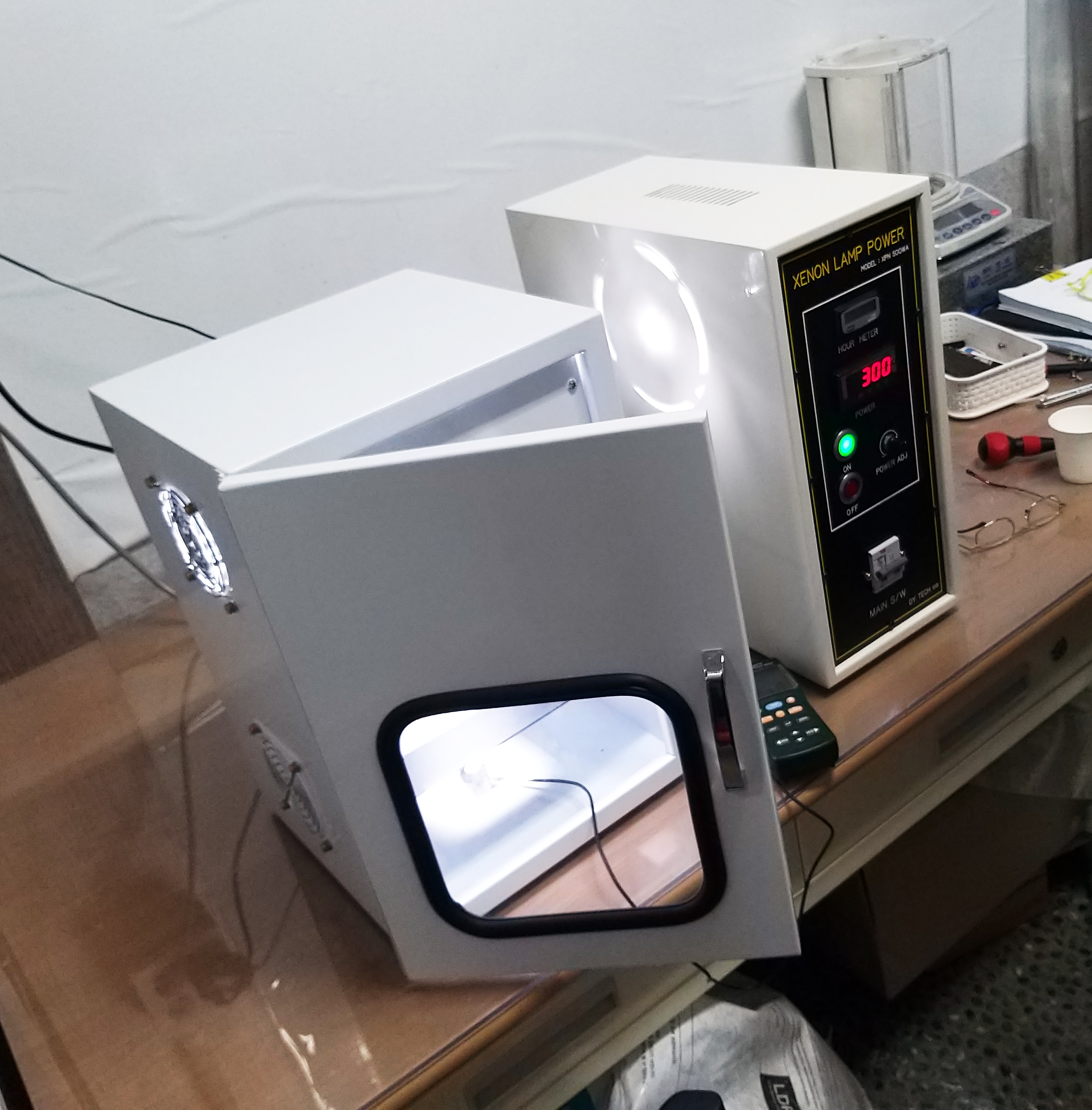 안산에 위치한 한 연구소에 500W제논램프(Xenon Lamp) 태양광 시험기(Solar Simulator)를 납품하였습니다. 이곳에서는 각 시료의 광 투과율을 적외선 온도계(Infrared Thermometer)를 사용하여 체크 한다고 합니다. 챔버 정면 도어에 유리창을 내어 외부에서 적외선 온도계를 사용 할 수 있도록 하였습니다.