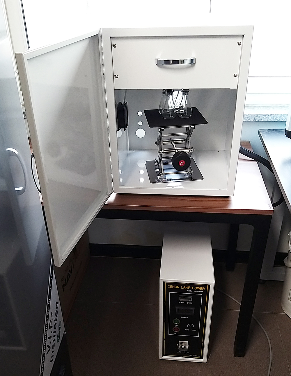 충남대학교에 500W 제논램프(Xenon Lamp) 태양광 시험기(Solar Simulator)를 납품하였습니다. 나노카본(nanocarbon) 물질 흡착실험 용도로 사용 된다고 합니다. 500W 제논램프는 광출력을 조절하여 300W가 나오도록 할 수 있습니다.